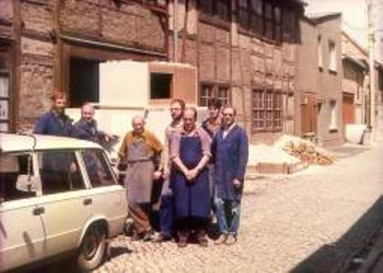 Lieferung mit dem Lada und Hänger am 10.06.1986 an der Werkstatt in der Ernst-Thälmann-Straße